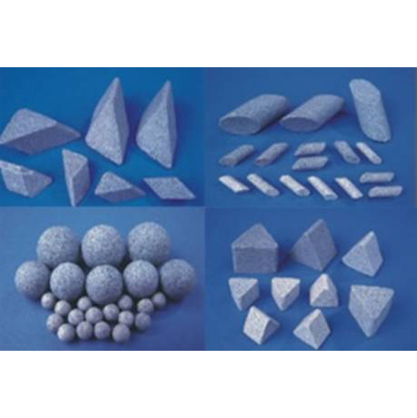 3、高铝瓷磨料:振动、涡流、离心光饰机等辅料,研磨时利用挤压摩擦原理,适用于各种材质工件的抛光、轻倒角、镜面抛光、电镀前表面细磨